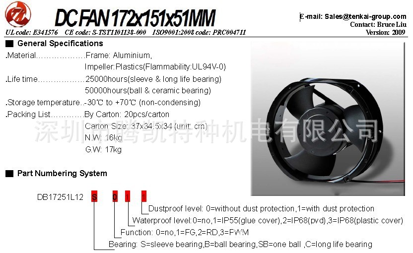 17251直流散热风扇产品特点:风叶独特设计;风量大;风压高;噪音低,散热效果极好。