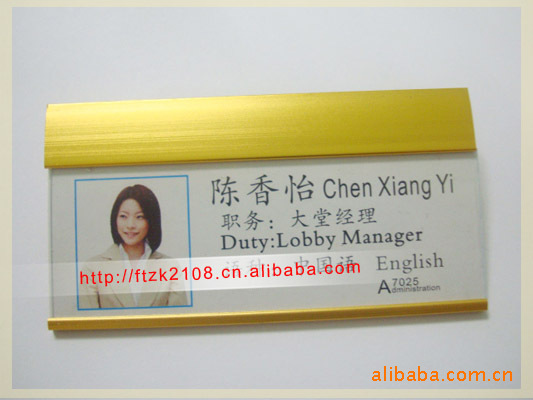 胸牌是一种悬挂或串扣于上衣左方的一种编号或介绍小标牌,大多数佩戴在西装、正装、西服上的徽章,起到一种介绍的作用