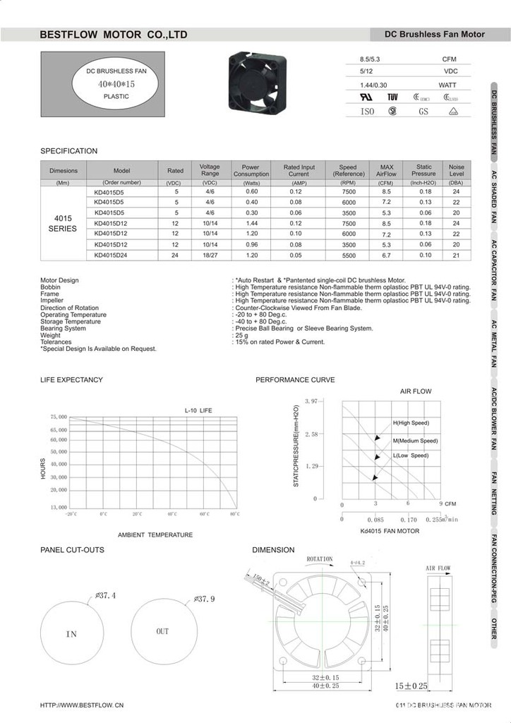 轴承:含油轴承(风扇寿命30000小时,滚珠轴承(风扇寿命50000小时);