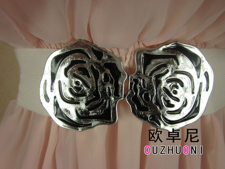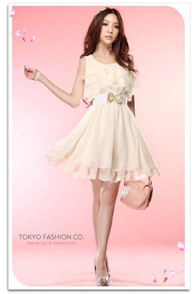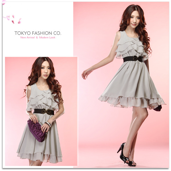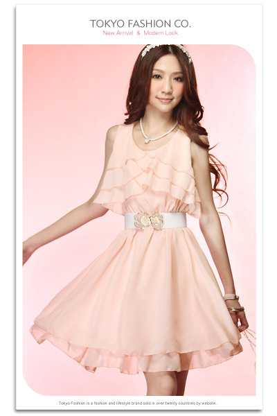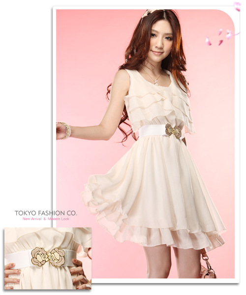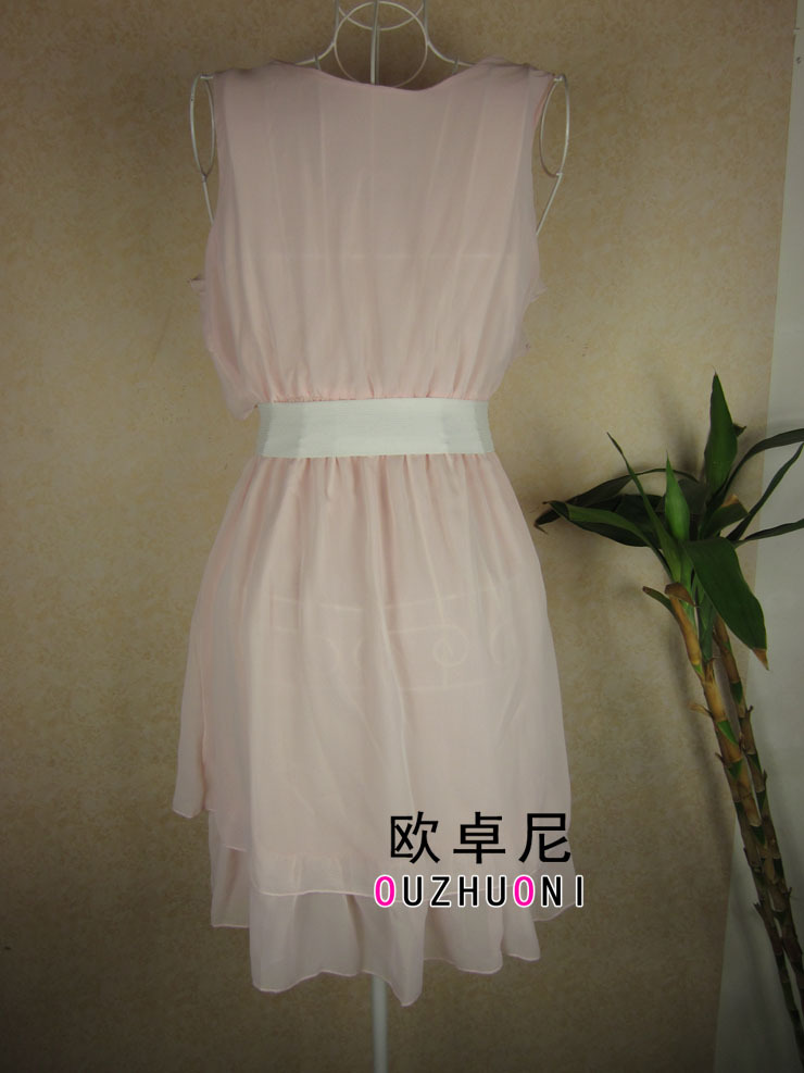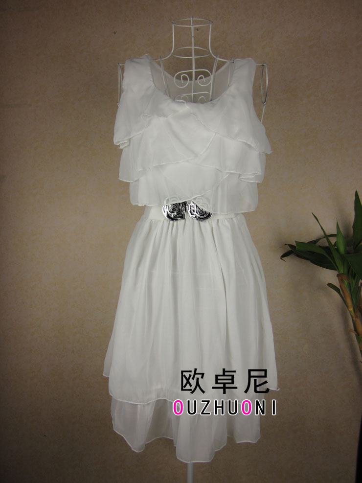 宝贝是净色雪纺连衣裙。前胸左右3层荷叶边,配皮带,飘逸,美美的感觉!