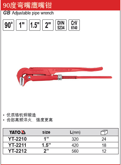 易尔拓YATO 90度弯嘴鹰嘴钳