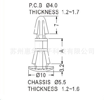 ◆FLAME CLASS:94V-2◆COLOR:NATURAL◆UNIT:mm用途:固定PC板于机板上,不会突出机板底部,外观美观。