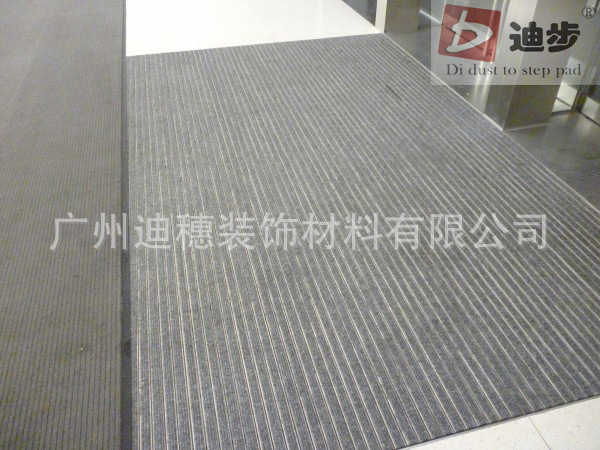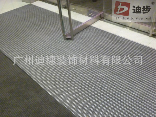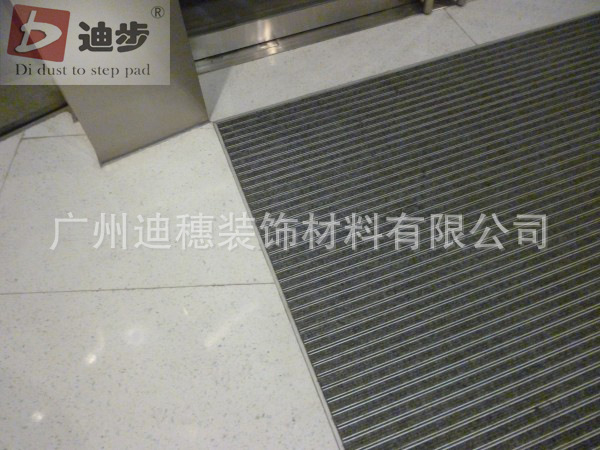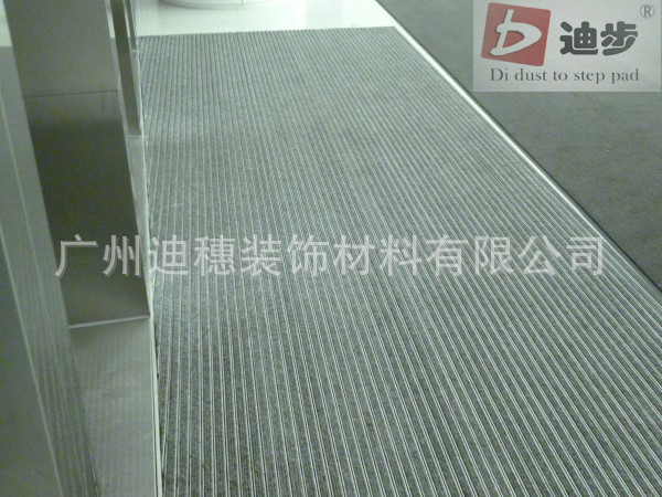 迪步产品简介:(手机:13538879121 电话:020-34707818网站:www.gzdibu.comQQ:992551717邮箱:992551717@qq.com)迪步铝合金除尘地垫框架用于德国氧化铝900系统制成,厚度为1.2mm-1.8mm-3mm ,铝合金框架用包塑不锈钢丝绳连接,配件用304不锈钢锁扣.承受力能在标准滚动之下可达到每平方1500kg-2000kg-3000kg不变形.面料采用德国纯尼龙刮尘面毯,,高约10 mm ,能阻燃,抗静电,没辐射,毯面耐磨可阻止泥土沙尘重复带入室内,从而保证了室内环境清洁和减少大理石的磨损率。产品色彩多元化可任意设计定做.