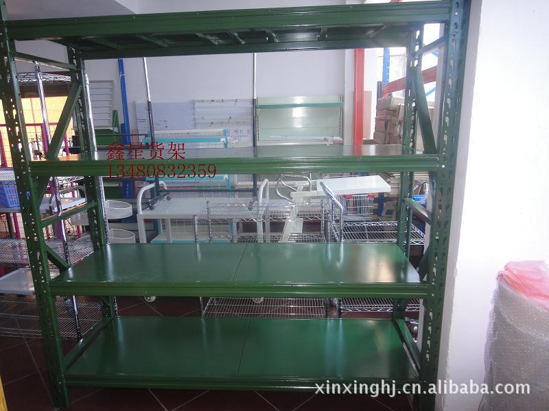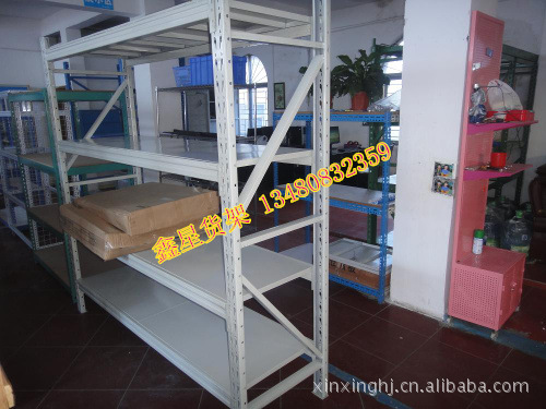 重型仓储货架:采用组合式结构,不用任何螺栓,外形美观,结构科学,安装拆卸方便;重型仓储货架层高以50mm为节距任意调节,每层在均匀分布状态下承载最大可达500kg;重型仓储货架说明:采用优质冷轧钢板制作,经机械冲压、冷轧、表面磷化、喷塑等工艺而制成的具有万能组合性的角钢货架。重货架坚固结实,承载力大,重型货架广泛应用于商场、超市、企业仓库及事业单位。