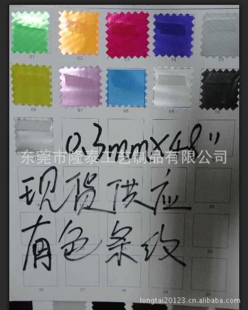 现货供应PVC透明0.25MM,0.3MM,0.5MM,0.8MMPVC压延薄膜、透明膜、加压透、水晶透、吹气膜、静电膜、光胶、压纹色膜、桌巾膜、浴帘膜、复合膜、磨砂与各类鞋面料等。可根据客人要求做到:防火、高弹、抗氧、耐寒、防霉、防紫外紫、低臭味,符合EN71、ASTM-963,ROHS及不含邻苯二甲酸盐,可通过环保6P,15P,16P,CPSIA,PAHS,最新的REACH(SVHC)等SGS测试。兼营PVC硬片,PET,PE,PEVA,TPU等环保材料。加工原料全部为环保可在生产原料为主,生产的产品均通过了16P环保测试、REACH46测试。产品广泛用于:手袋、箱包、浴帘,桌巾、鞋材、吹气玩具、医疗用品、水上用品、文具、雨衣、暖暖包、胶袋、广告、商标等领域。