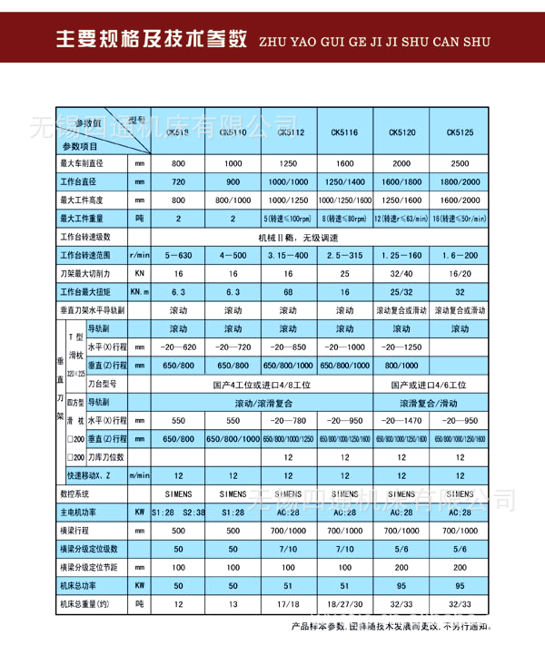 3、 CK518—CK5116主传动采用交流伺服电机驱动,两档变速采用进口变速箱,高速旋转工作均进行静、动平衡,传动齿轮采用磨齿工艺,实现传动效率高、噪声低、高转速下可靠平稳运行。