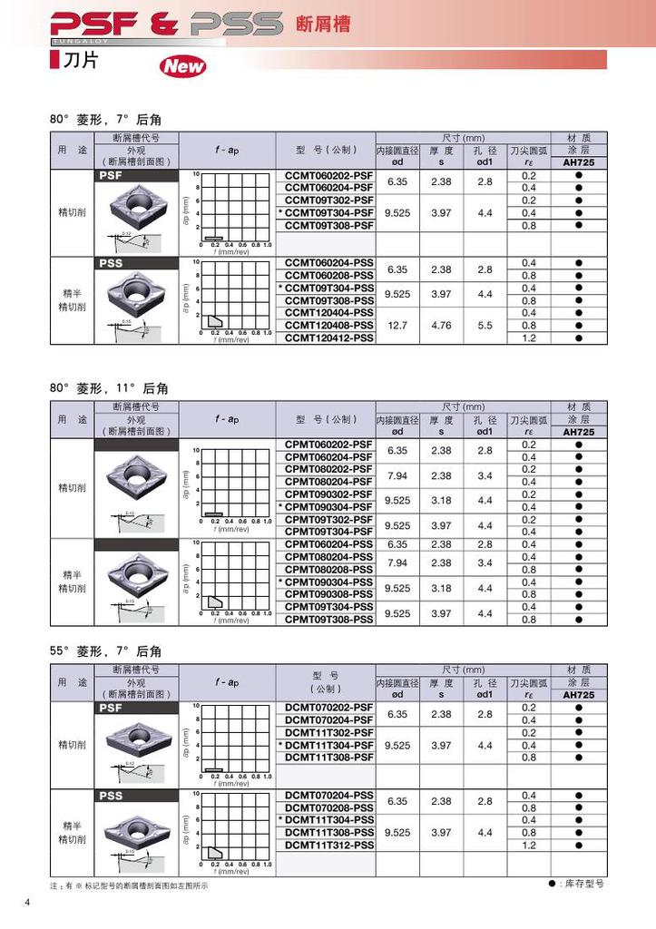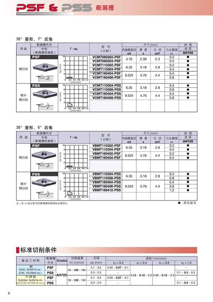 日本,Tungaloy,泰珂洛,东芝,钢和不锈钢加工断屑槽刀片,PSS,PSF,槽形
