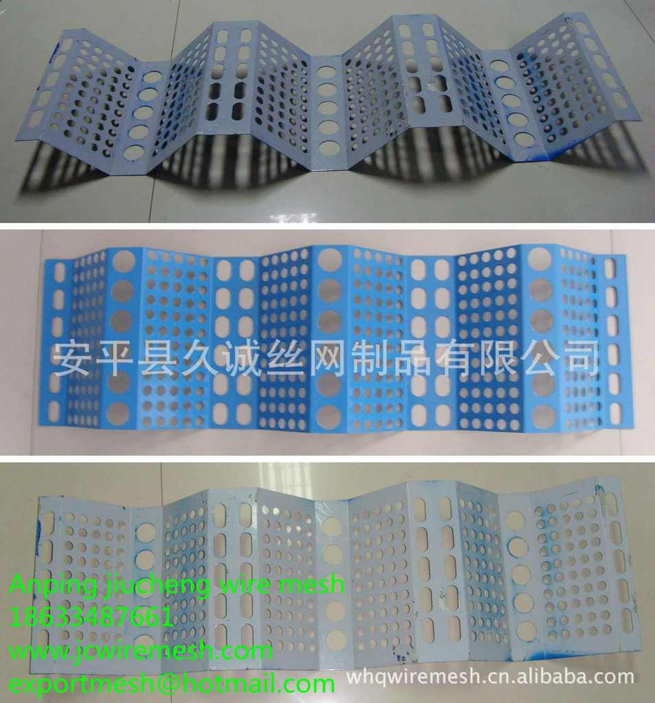 (1)用普通冷轧钢板做为基础材料,板材厚度0.5mm-1.5mm,由数控设备进行冲孔,成型,再进行双面高压静电粉末喷涂的表面抗腐蚀处理。