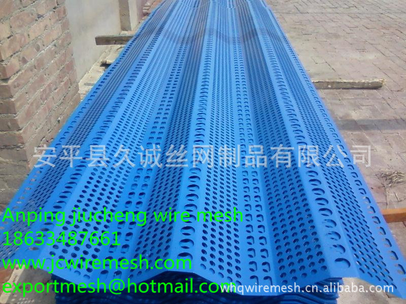 防风抑尘网采用金属原材料经机械组合模具冲孔、压制、喷塑而成,具有强度高、韧性好、抗弯曲、抗老化、抗阻燃、耐高低温、耐酸碱、承受弯曲变形能力强等优良性能;具有使用寿命长、色彩鲜艳不易褪色等特点;防风抑尘网不仅外形美观,维护成本低并且具备防火,防盗等优点;完全避免了以往表面覆盖、喷淋技术、全封闭几种措施反复投资、耗资巨大、受场地和作业要求限制、抑尘效果不佳的问题。此项产品工程造价低、设置灵活、安装简单,一次投资,长期受益。挡风抑尘墙综合抑尘效果良好,设置后不仅使污染严重的地区环境得到有效的改善,而且实施挡风抑尘墙的煤场每年还节省煤数千吨,在取得良好社会效益的同时又获得了较大的经济效益,美观整齐的挡风抑尘墙也成为这些地区一道怡人的风景线!