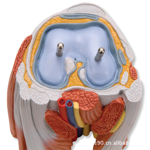 豪华型带膝的小腿肌模型,3部分这款实物大小的模型可在膝处横切开以观察关节结构。腓肠肌可拆卸。置于基架上。