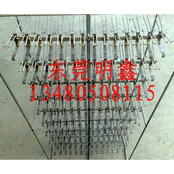 挂具在电镀生产中主要起导电、支撑和固定零件的作用,挂具和电极相连接,使电流较均匀地传递到零件上进行电镀。在某些情况下,由于溶液性能限制镀层的均匀分布,还可依靠挂具来弥补。