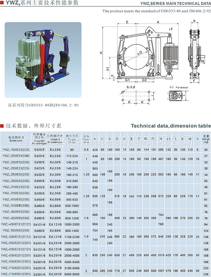 广泛用于起重、冶金、矿山、港口、码头、建筑机械等机械驱动装置的减速或停车制动