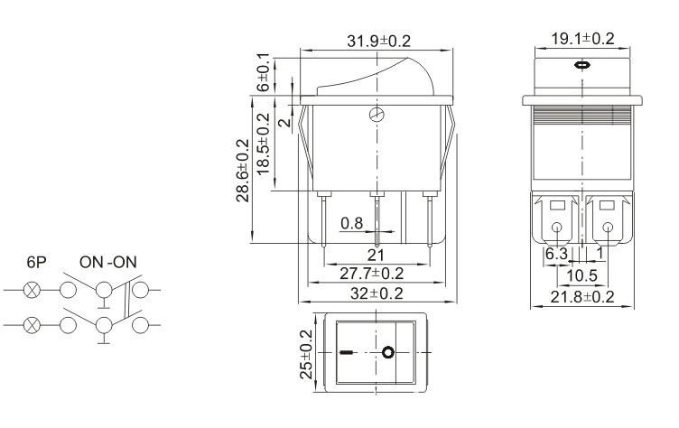 中文命名:船形开关 基本参数 1.额定范围Rating: 3A 250V AC