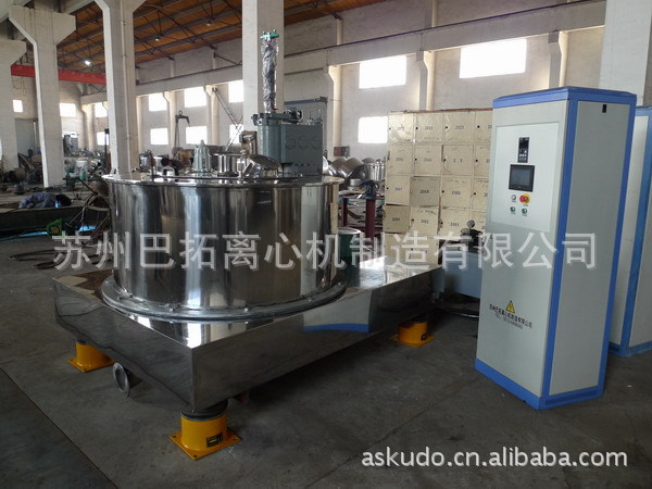 平板式离心机是由三足式离心机发展而来,整机采用四个液态阻尼隔振器,机器重心相对三足式更低,隔振方式相对原来的三足悬挂结构更加优化,整机运行的平稳度更高,而且由于采用平台和机体一体化结构,平台日常可兼用于机器的操作平台。