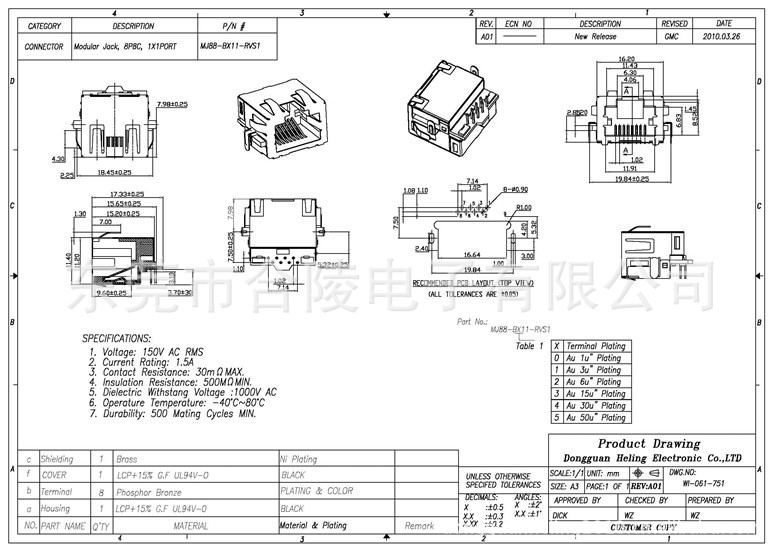 我司专业研发、生产RJ11、RJ45连接器,电脑、网络、通讯接插件及其他精密连接器。RJ11电话插座(4P2C、4P4C、6P2C、6P4C、6P6C);普通RJ45网络插座(按P分有:8P8C、10P8C、10P10C;按接口数分有:单口、双口1x3、1x4、1x6、1x8、2x1、2x2、2x3、2x4、2x6、2x8);有带屏蔽RJ45(有金属外壳)和不带屏蔽RJ45(没有金属外壳);有带LED指示灯RJ45和不带LED指示灯RJ45;90度TH型RJ45和180度RJ45立式直插等多种款式。贴片式RJ45 SMT网络接口、沉板式RJ45网络连接器、超薄RJ45网口、RJ45带滤波器插座(100兆、1000兆);RJ45+USB连接器;RJ45+USB带变压器连接器;RJ45沉板式SMT网络接口;USB连接器;HDMI连接器;VGA连接器;SFP光纤连接器等电脑、网络、通讯周边连接产品。我司本着诚信、平等、互利的原则。希望和广大客户建立长期、愉快的合作关系。欢迎联系洽谈!