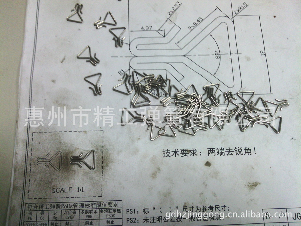 材料:符合环保要求(ROHS)公司所生产弹簧原材料来自国内外的企业,保证了弹簧过硬的质量。原材料材质有不同规格供客户选择,如碳素钢丝、锰钢钢丝、不锈钢线、琴钢线、磷铜线、镀镍线、碳钢线、扁线等