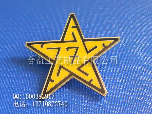 主要工艺有:蚀刻(咬板)、压冲、注漆(填油)、拉丝、丝印、平印、喷漆、电镀、滴胶、仿珐琅、锌合金压铸、柯式印刷等