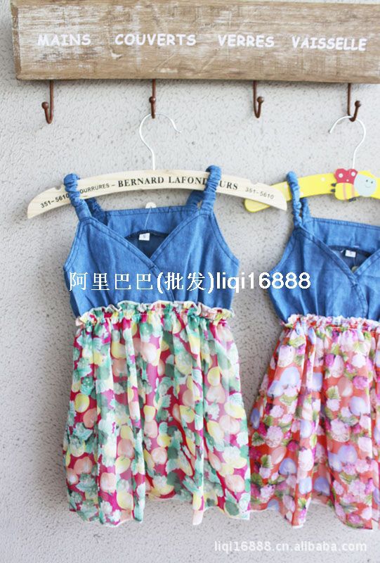 现货童装批发 女童8011牛仔加雪纺吊带裙 0.4KG