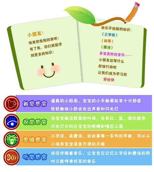 产品品名:手拍音乐鼓 带三字经 唱儿歌