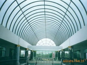 阳光板可以冷弯安装,其中中空板一定要顺着肋的方向弯曲。