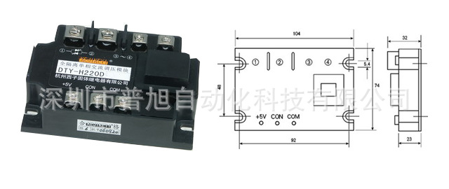 全隔离单相交流调压模块(以下简称单相调压模块DTY)是集同步变压器、相位检测电路、移相触发电路和输出可控硅于一体,当改变控制电压的大小,就可改变输出可控硅的触发相角,即实现单相交流电的调压。根据输出可控硅器件不同分一只双向可控硅的普通型,两只单向可控硅反并联的增强型和一只单向可控硅的半波型等三类。按单相交流负载的额定电压分220V和380V两类,按控制信号的不同分E、F、G、H型等四类,以下为规格型号表: (注:电流等级为模块内部可控硅最大电流有效值)