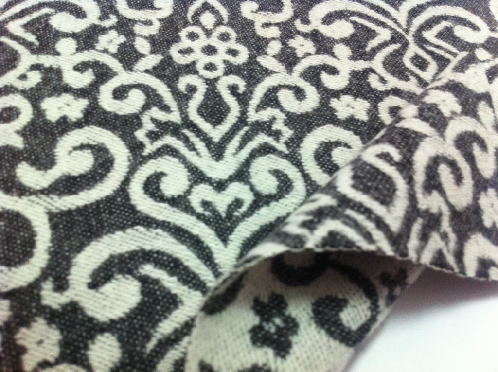 1) 成分: 40%毛 60%涤 2) 克重: 450g/m 3) 门幅: 57/58" 4) 染色工艺方法: 色纺 5) 组织结构: 提花