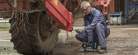 该工具的显示器会显示电池电量、润滑脂分配量、泵/电机转速和堵塞的润滑点。 本多用途的润滑脂枪提供了两种流速选项 —— 低和高 —— 而且每次电池充满后,一一次最多可以为 15 个润滑脂筒配送润滑脂。 TLGB 20 可以提供可达 700 bar (10 000 psi) 的压力,并设有内置灯,可以照亮工作区。