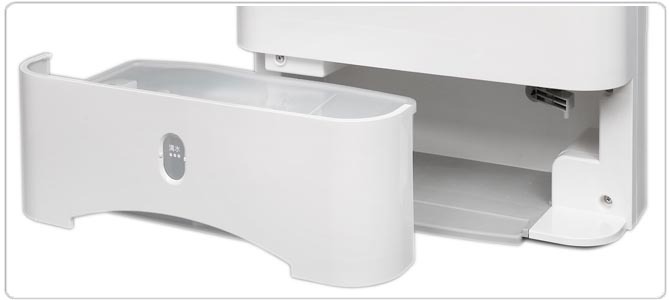 - 防溢水自动报警停机功能:本机配置前置带提把水箱,当水箱水满时,控制显示面板上的水满指示灯亮起,机器自动停机,并间歇发出“哔、哔”声,提示水箱已经满水。