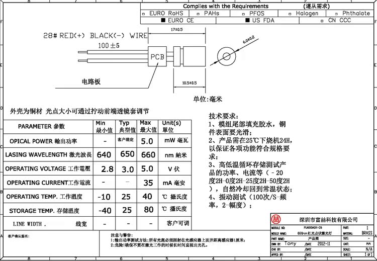 2,波长、尺寸、工作电压、工作距离、输出功率、光斑模式、导线长度等参数可以根据客户需求定制,详情请咨询我们