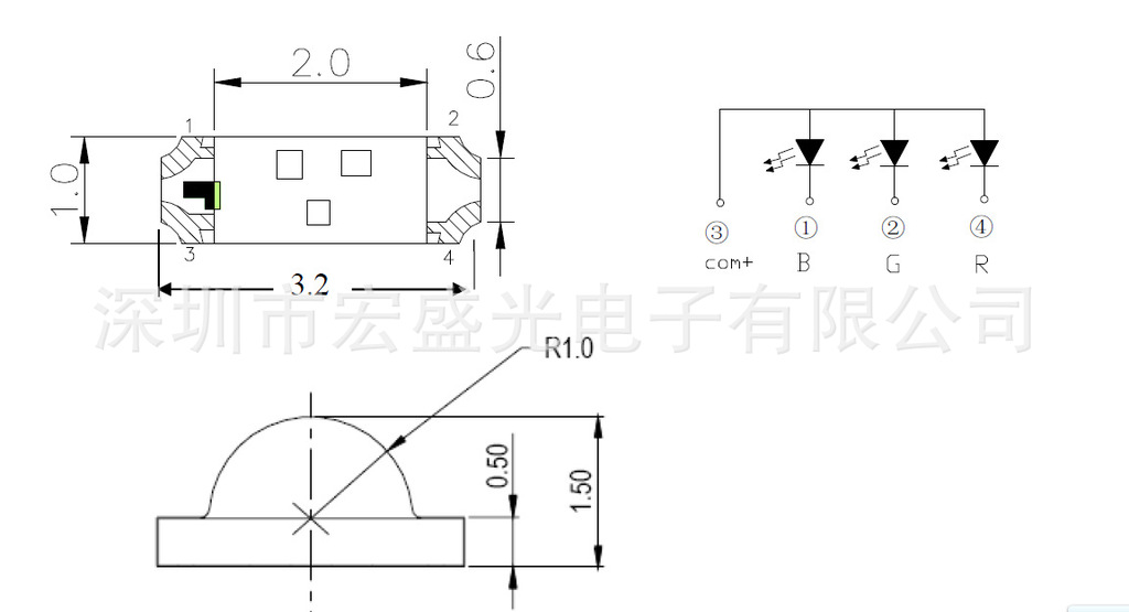 产品尺寸(Size):3.2*1.0*1.5mm