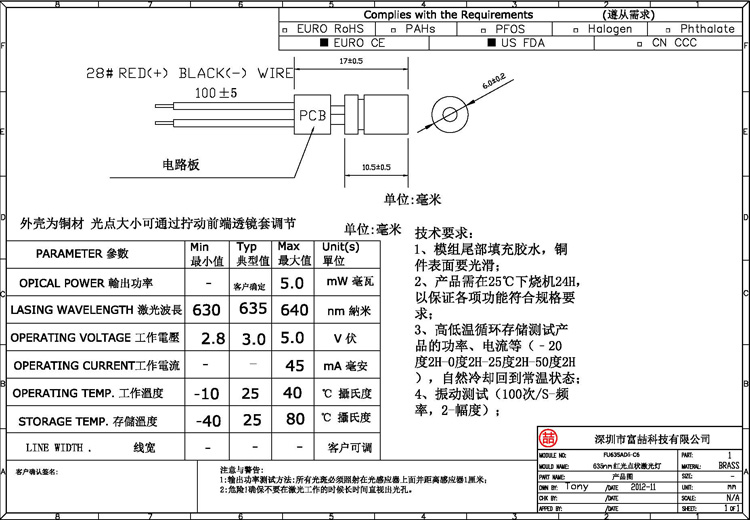 2,波长、尺寸、工作电压、工作距离、输出功率、光斑模式、导线长度等参数可以根据客户需求定制,详情请咨询我们