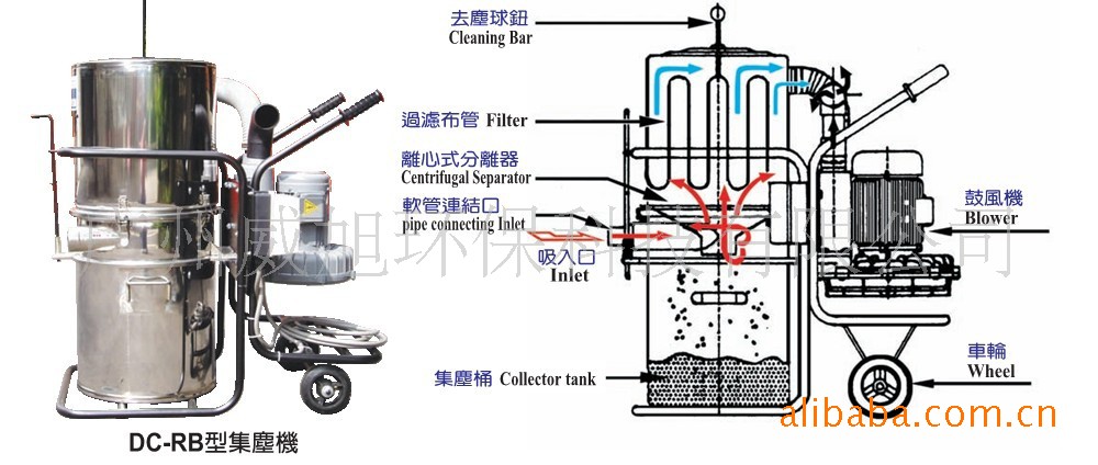 特性:本集尘机为本公司最新制造,采用旋风收尘极喻袋式吸尘机之特长,吸力特强。、