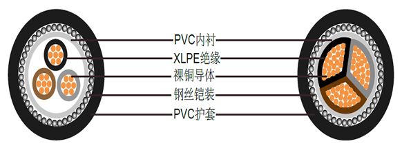 这种电缆是用于电源和控制电路, 此电缆的钢丝铠装祈祷很好的保护作用. 因此可用于建筑物内部或直埋与地下.