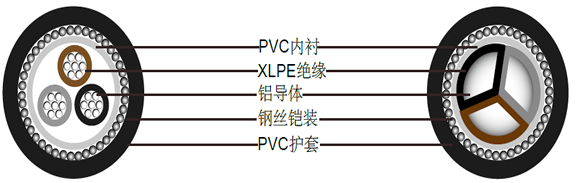 | 内护套铠装 | PVC (聚氯乙烯)单芯: AWA (铝丝铠装) |