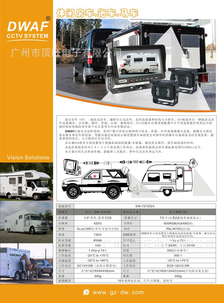 供应DWAF顶旺房车后视监控系统