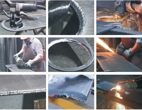 但是就以上切割/坡口方式而言,都存在着或多或少的问题是目前生产中很难解决的问题。如:人工切割/坡口,切割效率低、质量较差、切割面较为粗糙需要人工磨平,劳动强度较大、工人工作环境较为恶劣。半自动切割专机与人工相比较而言切割质量有了大幅度的提高,但是切割工件的一致性较差、人工干涉太多、切割轨迹形式单一、适用范围局限性大。同样数控切割机也存在这使用范围有限,再者还存在工件定位的问题、工件下料变形导致坡口尺寸大小不等的问题。机器人自动化切割系统目前在国内已经是较为先进的切割/坡口设备了,但是现在同样也存在定位精度、板材下料变形、编程困难等问题。如下图为坡口机与人工坡口效果图。