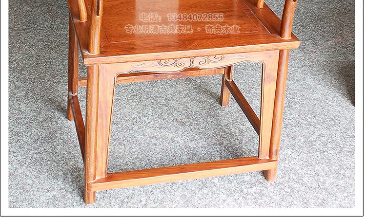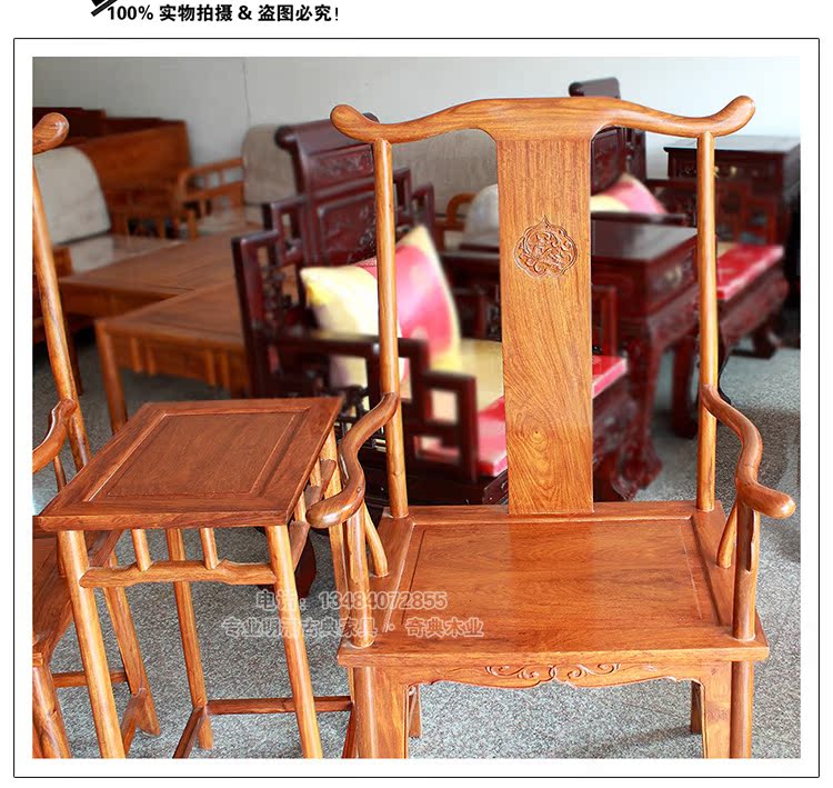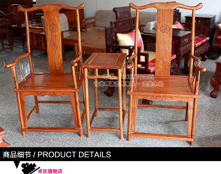 | 品牌名 | 卓匠 | 宝贝名称 | 非花官帽椅三件套 | | 生产周期 | 5-25天,具体详情咨询在线客服! | 运输方式 | 物流运输 | | 产品产地 | 浙江东阳 | 保修期 | 一年 | | 风格 | 明清古典 | 包装方式 | 气泡膜瓦楞纸是免费包装,需打木架买家另外付钱 | | 产品尺寸 | 椅 60*进深46*坐高50(背高120)几 34*43*72高 | | 家具颜色说明 | 花梨本色,也可按照自己的要求定颜色 | | 保养说明 | 要避免潮湿,远离灶炉,要与酸、碱等化工试剂隔绝,防止腐蚀变质 | | 运费问题 | 网页上的标注运费并非真实费用,所有产品均由物流快运公司送达,需买家自行提货,买家承担运费,运费为货到付款 | | 材质说明 | 非洲花梨木材本身条纹和交错纹理构成美丽花纹,木质坚硬耐久性强是名贵的深色木材。 |