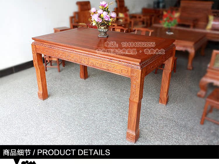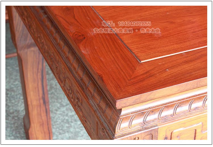 | 品牌名 | 卓匠 | 宝贝名称 | 花梨木餐桌 | | 生产周期 | 5-25天,具体详情咨询在线客服! | 运输方式 | 物流运输 | | 产品产地 | 浙江东阳 | 保修期 | 一年 | | 风格 | 明清古典 | 包装方式 | 气泡膜瓦楞纸是免费包装,需打木架买家另外付钱 | | 产品尺寸 | 长138*宽85*高80 | | 家具颜色说明 | 花梨本色,也可按照自己的要求定颜色 | | 保养说明 | 要避免潮湿,远离灶炉,要与酸、碱等化工试剂隔绝,防止腐蚀变质 | | 运费问题 | 网页上的标注运费并非真实费用,所有产品均由物流快运公司送达,需买家自行提货,买家承担运费,运费为货到付款 | | 材质说明 | 非洲花梨木材本身条纹和交错纹理构成美丽花纹,木质坚硬耐久性强是名贵的深色木材。 |