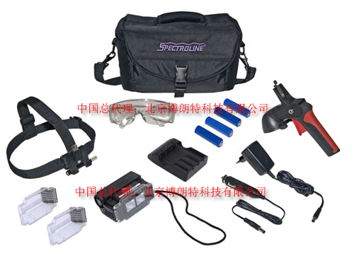 - 紧凑、重量轻。配有两个超高强度长波UV-A(中心波长365nm)LED用于检测,及三个白光LED用于黑暗区域普通照明。