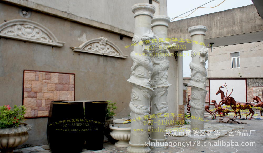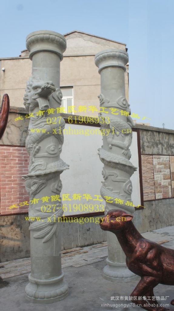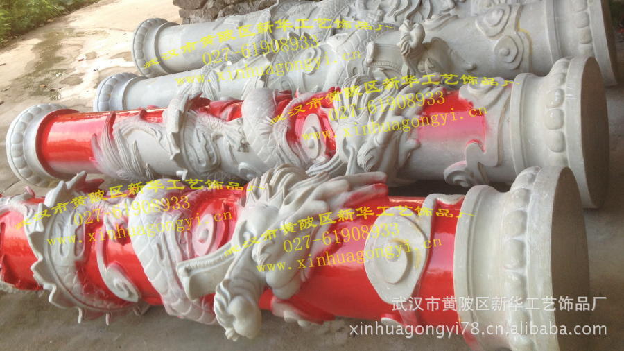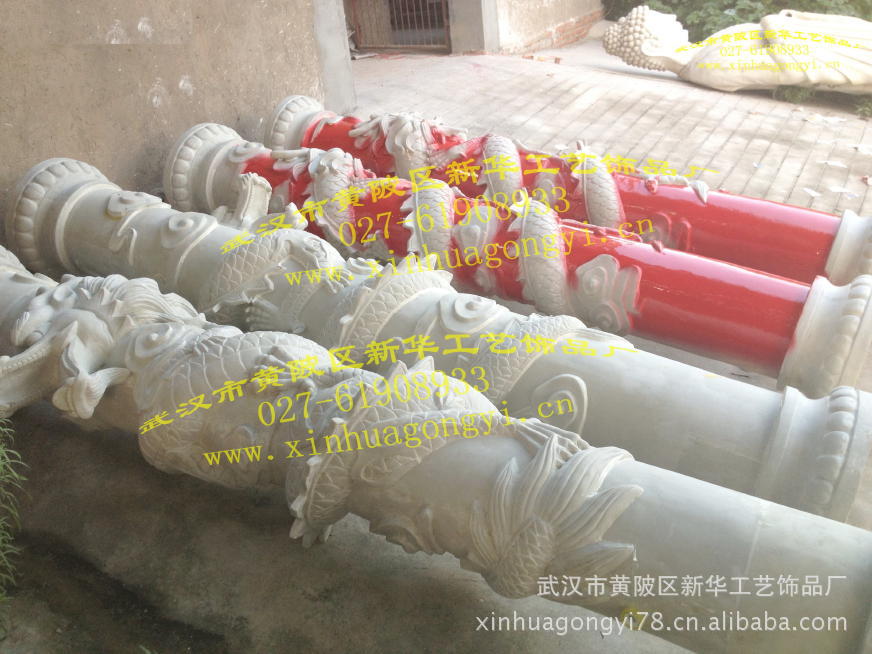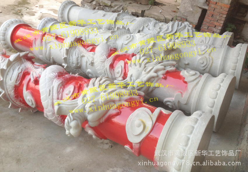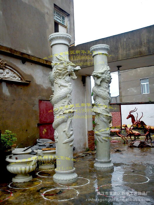 我厂专业加工制作各种形状的龙柱,灯笼柱,盘龙柱,龙柱,罗马柱,立柱、花瓶柱等及模具定做,龙柱经过雕刻而采用玻璃钢制造,形象生动,神采自然,造型美观,色彩艳丽,欧式风格的设计美观大方,尽显高雅,欢迎新老客户来图来订做。