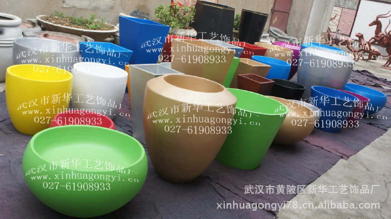 本厂生产的玻璃钢(简称FRP)花盆是一种用玻璃钢纤维作增强材料,不饱和聚酯树脂为基体,经过特殊的加工复合而成,玻璃钢花盆重量轻,强度高,造型独特,耐腐蚀,永不褪色,玻璃钢花盆有浮雕等特殊工艺,有欧美,喷泉等风格,有青铜,铸铜,仿古效果,玻璃钢花盆美观实用周期长的特殊性,是目前最受欢迎的一种花盆,本厂可根据客户要求进行定制产品,我厂上千个品种花盆已出售全国各地城市。