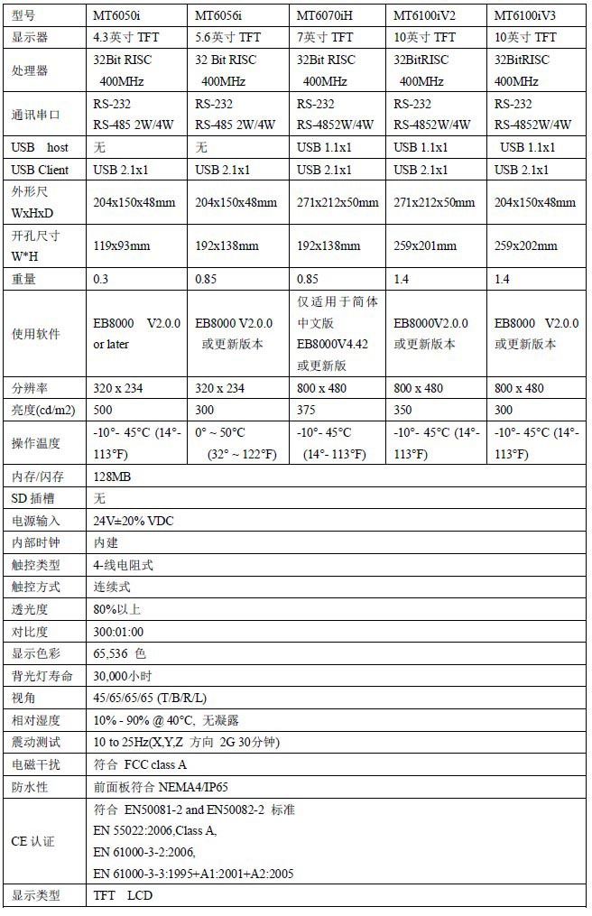 MT6000i人机界面产品系列参数