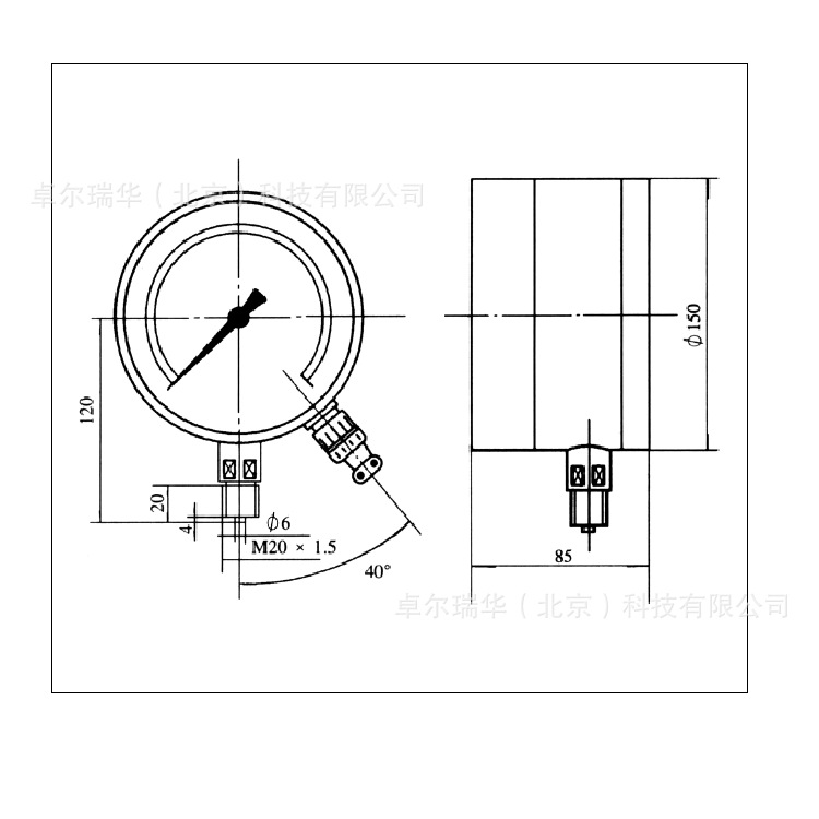 安装方式:径向直接安装连接螺纹M20x1.5(或其他的螺纹尺寸)