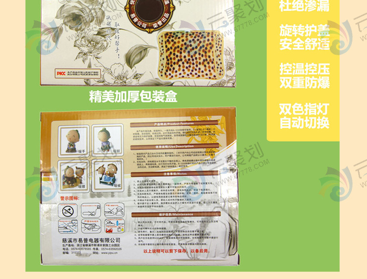 即使在万一温控器失灵的情况下,当内部压力达到一定的程度时,暖袋必定会强行断电,让产品真正做到永久防爆!!