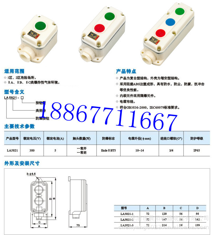 LA5821-1,LA5821-2,LA5821-3防爆控制按钮