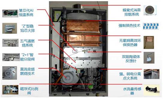 万和燃气热水器JSQ32-16P3-V10非常节能恒温性强排的内部构造: |