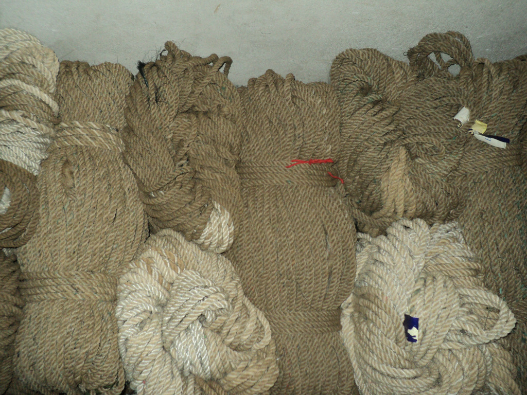 图-3 生产好的成捆绳子(每捆50条、颜色深一点的绳子是由于尼龙网丝在海上捕鱼后留下的少许污垢所致)