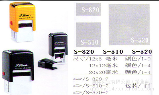 台湾shiny新力旗下款式多种,分别有:轻型回墨印,重型回墨印,随身印章,光敏印章,字粒回墨套印,回墨日期印,日期钢印,日期章,号码章,数字章,转动印章,回墨印油,光敏印油,原子印油,水性油墨,新力印台,毛毡印台,海绵印台,防伪指纹印台等等。