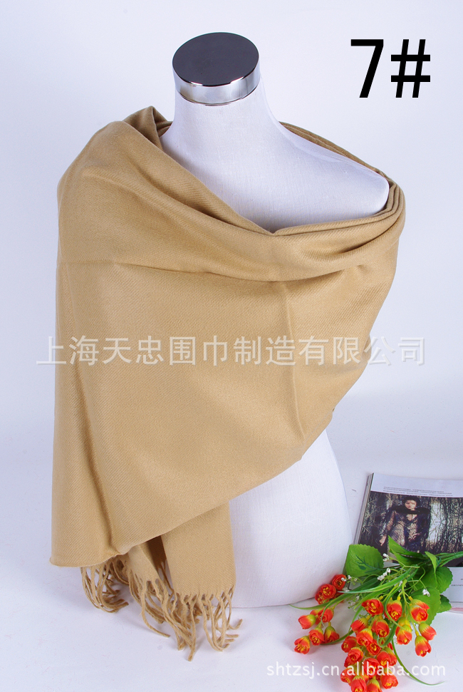 产品特色:仿羊毛材质,有着精纺羊毛柔软,特制加厚纯色披围巾二用款