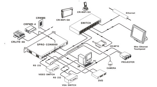 SPRO-CON9000是一款简易型网络可编程控制主机:1U箱设计,采用主频高达210MHz的32位内嵌式处理器,内置超大内存,可高速运算复杂的逻辑指令;可实现多种类型控制方式组合,支持4路I/O输入/输出。支持CRNET、CRLINK及以太网(TCP/IP)三种控制方式。支持控制IR,RS-422/RS-485等多类第三方设备。 内嵌式红外学习器。
